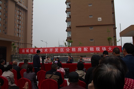 2019年4月13日,是運(yùn)城經(jīng)濟(jì)開發(fā)區(qū)建設(shè)發(fā)展公司員工最開心的日子。一大早,員工們就衣著整齊地站在“豐源居”小區(qū)廣場(chǎng)上,準(zhǔn)備迎接第一批搖號(hào)入住的租客。